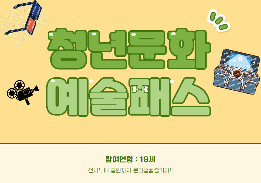 만 19세 청년들을 대상으로 생애 단 한번 순수예술(공연,전시)에 사용가능한 문화예술패스 지원합니다.
