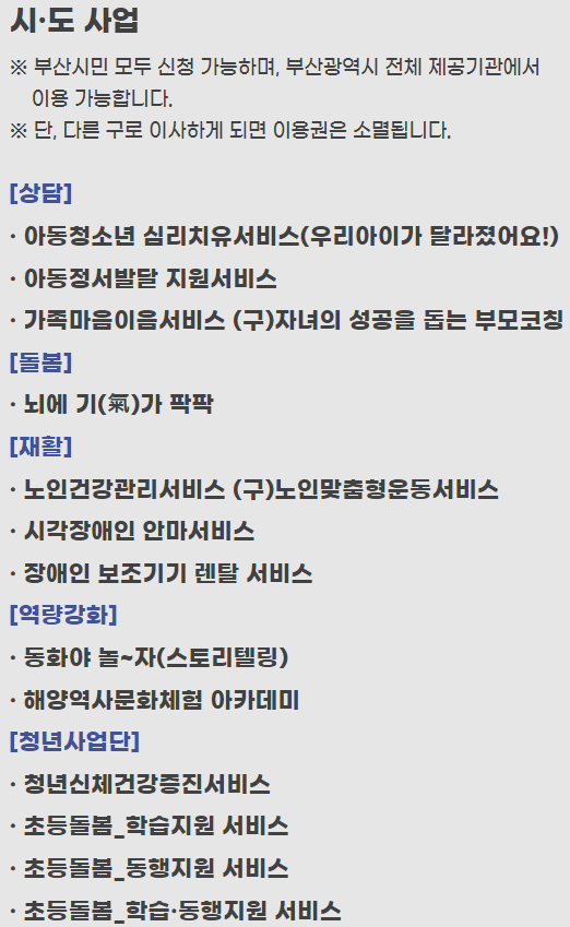 시, 도 사업은 공통사업이어서 부산시민이면 다 받을 수있는 혜택입니다