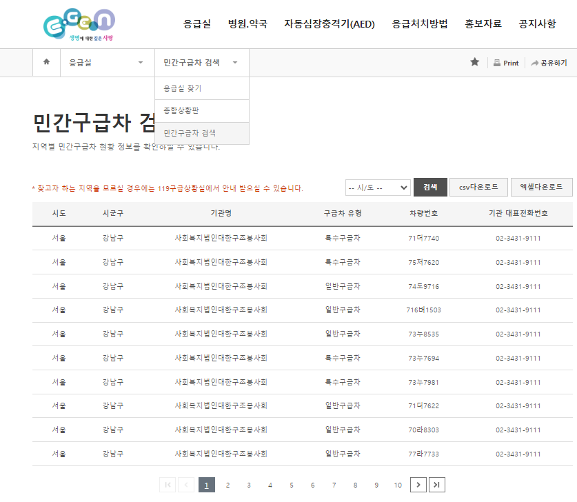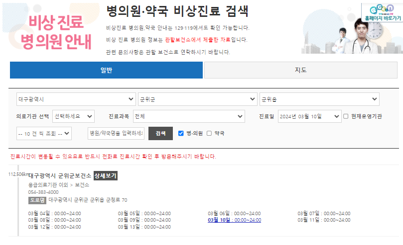 병의원·약국 비상진료 검색-일반 | E-GEN통합홈페이지