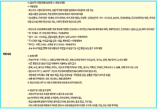 ③교육(학자금 대출, 자격증·시험 응시료)에만 현금사용 가능나머지 항목엔 현금사용 금지