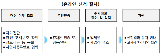사업자당 최대 20만 원 전기요금 지원하며 별도의 제출서류 없이 온라인상 신청자 정보만 입력하면 끝납니다.