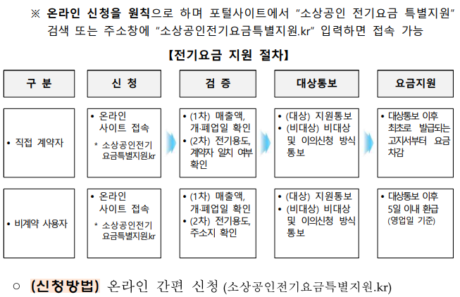 소상공인 전기요금 특별지원 소개, 신청하기, 신청결과 확인 등