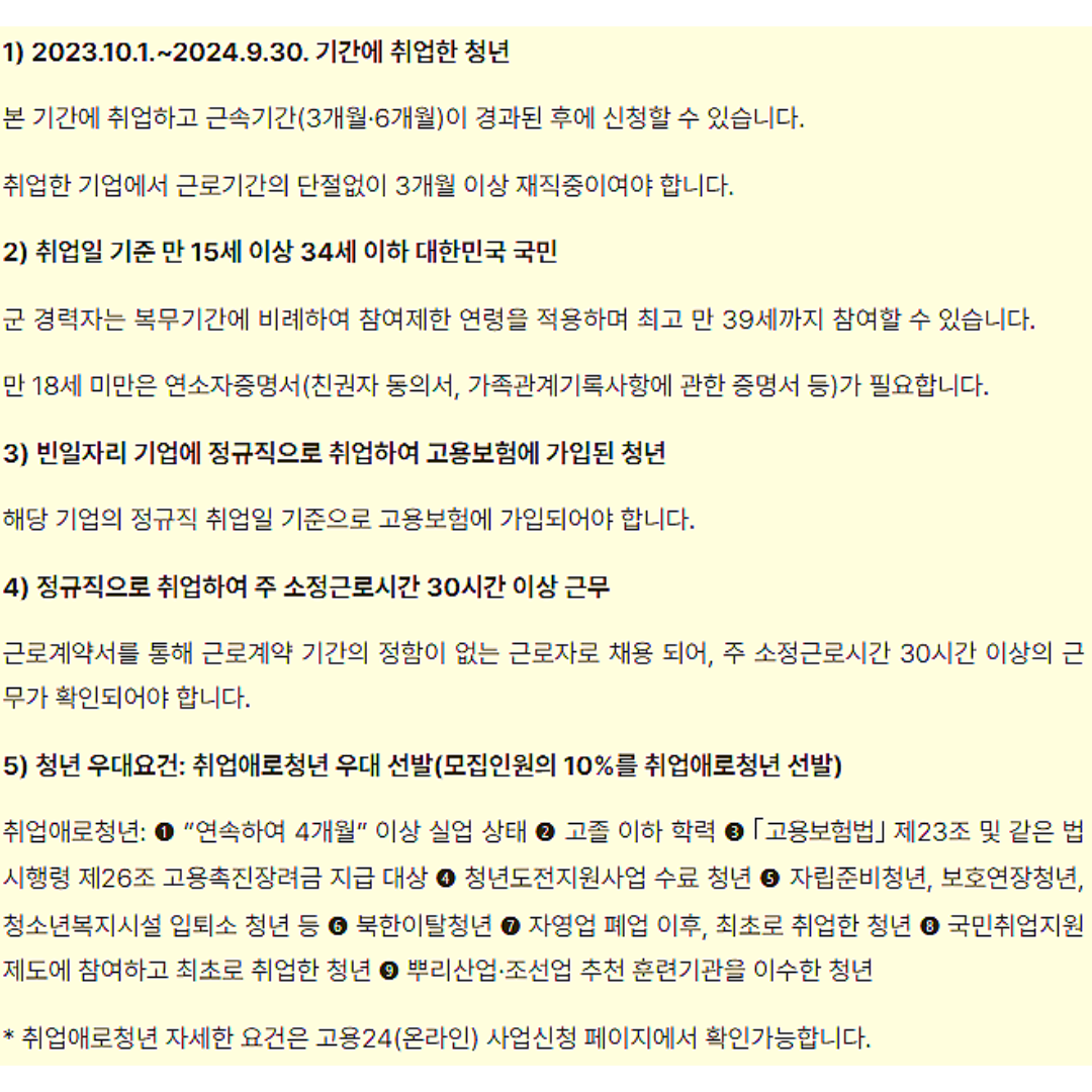 4. 일자리 채움 청년지원금 신청자격