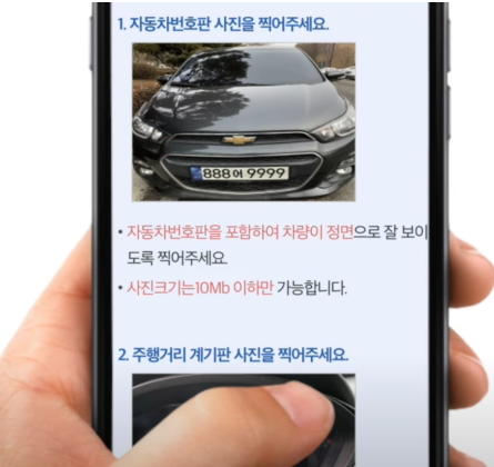 받은 문자의 사진촬영 링크를 통해 차량 계기판하고 번호판 사진을 촬영해서 보내시면 됩니다