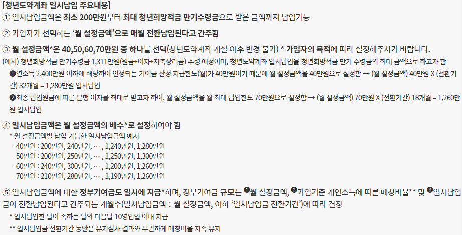 4-1. 청년도약계좌 일시납입 주요 내용