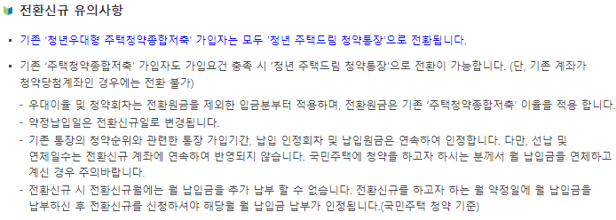 일반청약 가입자는 은행 영업점에서 전환 신청 시 확인 후에 전환 가능합니다.